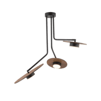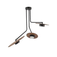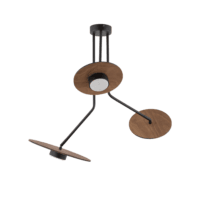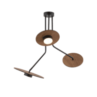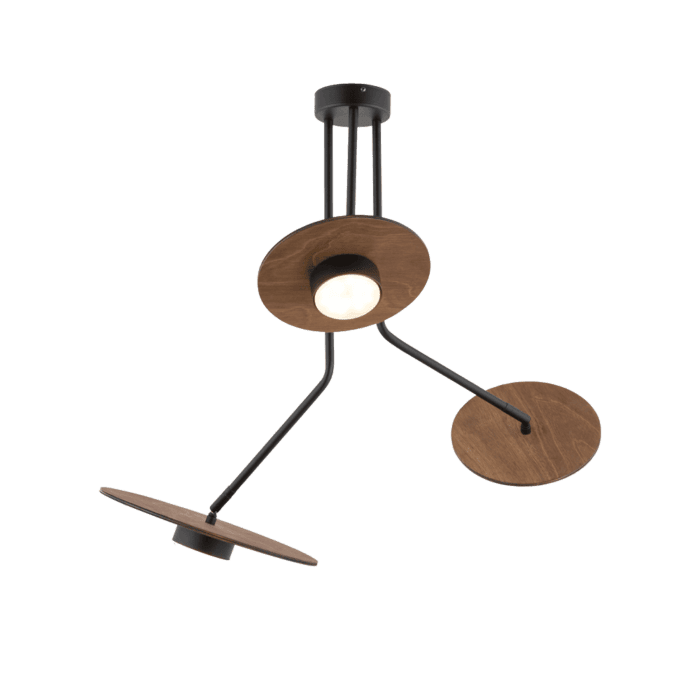 Ceiling mounted DISK 3 light fixture made from steel and wood for its industrial design.